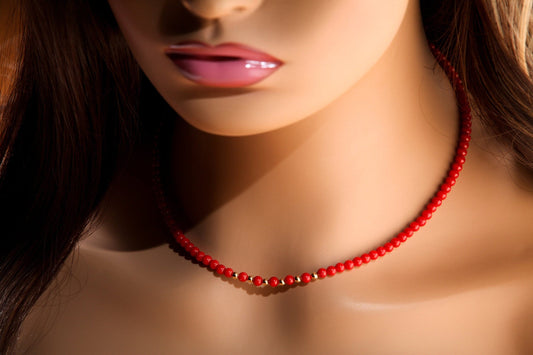 Bambuskoralle 3mm glatte runde echte AAA-Qualitätskette mit 3mm 14K Gold gefüllten Spacer Perlen und Karabinerverschluss, Strand, Boho Geschenk für Sie