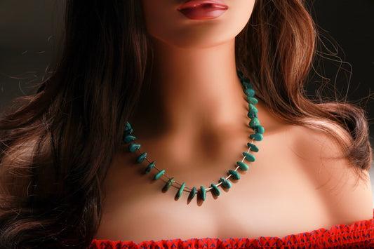Natürliche tibetische Türkis-Tropfenkette mit 925er Sterlingsilber-Verschluss und flüssiger Silber-Fetischkette (21 Zoll) von Navajo