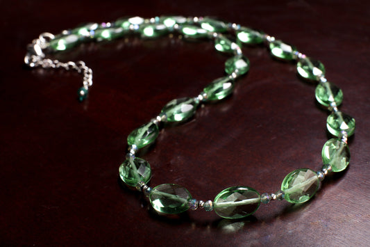 Grüner Quarz, facettiert, oval, passende Kristall-Akzentperlen, 20,5 Zoll lange Halskette mit 3 Zoll langer Verlängerungskette