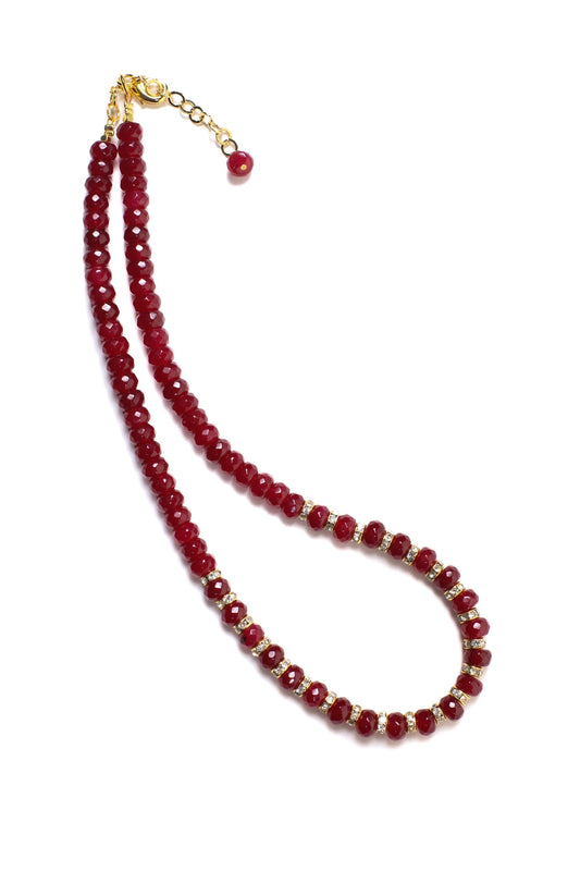 Facettiertes Rubin-Jade-Rundstück mit Strass-Abstandshaltern, 18 Zoll große Halskette mit 2 Zoll Verlängerungskette, wählen Sie Gold oder Silber