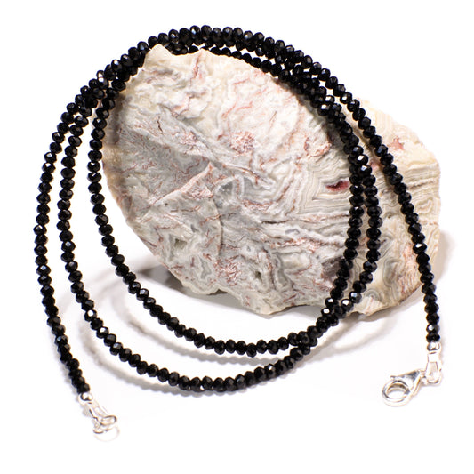 Echter schwarzer Spinell, 3 mm, 4 mm, mikrofacettierter Diamantschliff, 925er Sterlingsilber, Herrenhalskette, 50,8–116,8 cm, Edelstein mit Stärke und Kraft