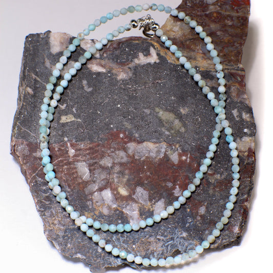 Natürlicher Larimar Facettiert 2,5 mm Edelstein Choker, Layering Halskette in 925 Sterling Silber Kette und Verschluss, Geschenk, Heilstein