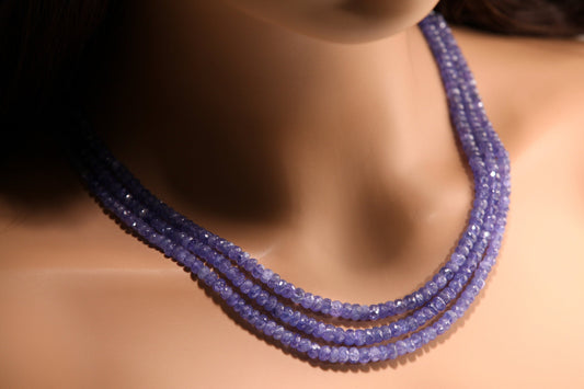 3-reihige facettierte natürliche Tansanit-Halskette, 5–6 mm, große Rondell-Scheibe, 16 Zoll plus verstellbarer langer Faden. AAA-Qualität. Schönes Geschenk, 330 Karat, AAA+