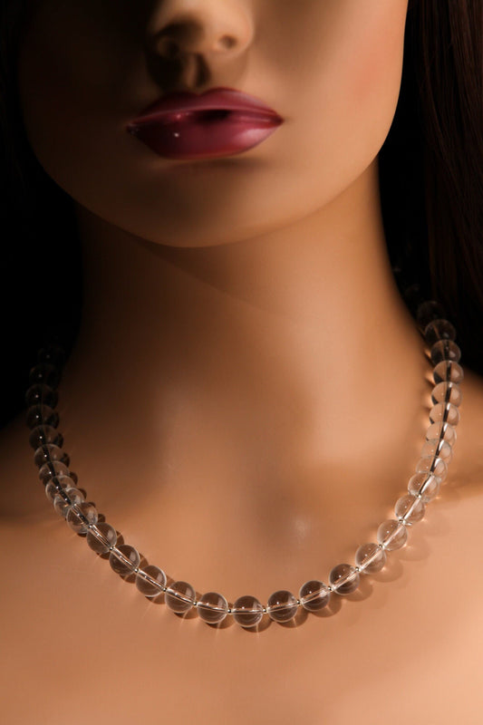 Natürlicher Bergkristall, 10 mm, glatt, rund, Silber, 2 Zoll verstellbare Halskette, Bergkristall-Quarz-Halskette in AAA-Qualität