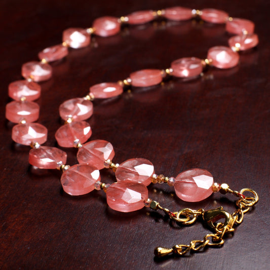 Wassermelonenquarz, facettiert, 12 mm, Münzform in Erdbeerquarz, 18,5 Zoll große Goldkette mit 1,5 Zoll Verlängerung, schöne Sommerkollektion
