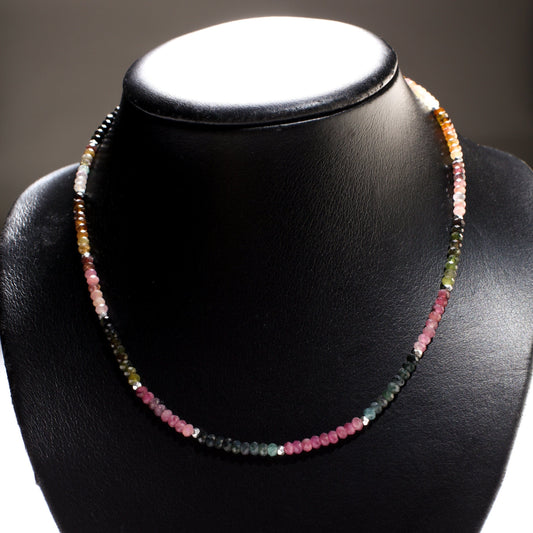 Natürliche Multi-Wassermelonen-Turmalin-Halskette mit facettierten Rondell-Elementen, 4 mm, mit Verschluss aus 925er Sterlingsilber, Heilung, Energie, Chakra, kostbares Geschenk