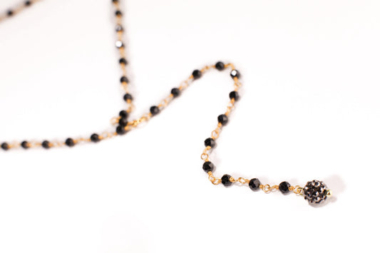 Echter schwarzer Spinell, mikrofacettiert, 2 mm, Diamantschliff, Choker mit 3" Y-Kette, Goldkette, Abschlussball, Layering, elegantes Geschenk