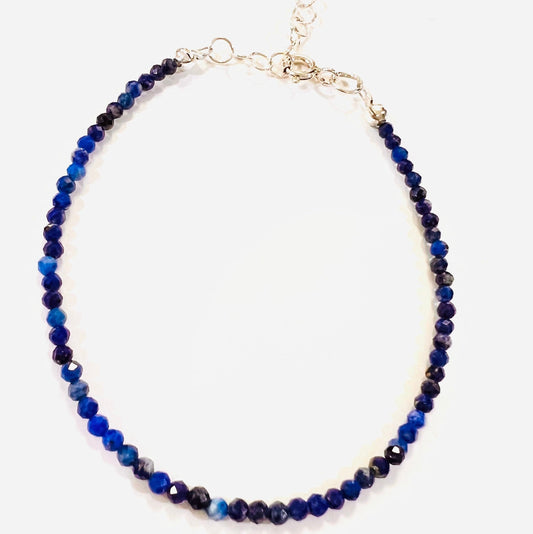 Armband aus 925er Sterlingsilber mit 2 mm starkem, mikrofacettiertem Lapislazuli und 1,5 Verlängerungen, ein Geschenk mit wertvollen Edelsteinen.