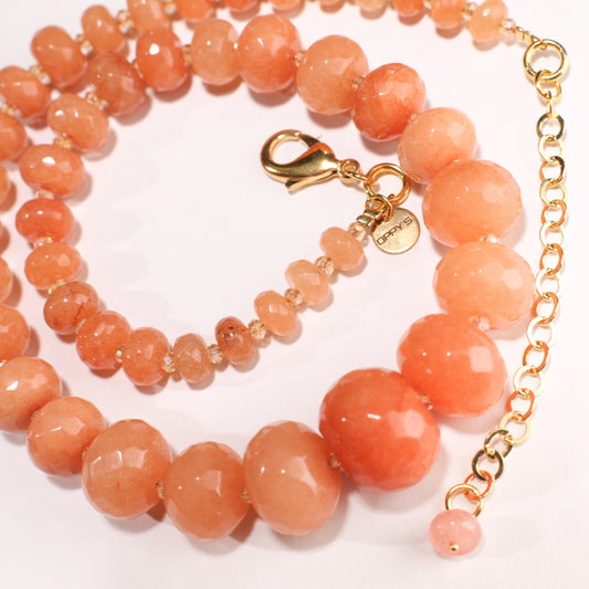 Pfirsichfarbener Aventurin, facettierte große 8–20 mm Rondell, Akzente mit Kristall-Abstandsperlen, 18,5 Zoll Halskette mit 3 Zoll Verlängerung, Geschenk für Sie