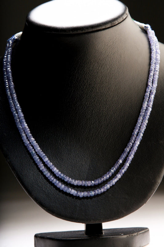 Natürlicher Tansanit, facettierte Rondellperlen, 3,5–4 mm, 2-strängig, verstellbar, mit Gewinde, 16 Zoll, Halskette 16 Zoll plus 6 Zoll, verstellbarer Faden, AAA+, Violett