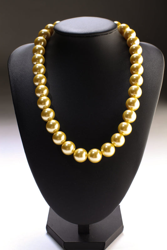 Goldgelbe Südsee-Muschelperle 14 mm große, hochglänzende Statement-Halskette mit starkem Magnetkugelverschluss, Brautgeschenk für Sie
