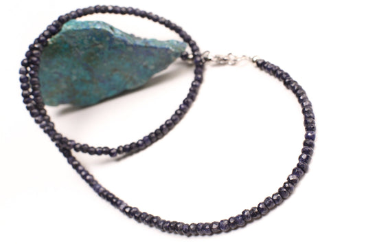 Echte facettierte Saphir-Rundkette, 4 mm, dunkelblauer Saphir-Edelstein, Statement-Halskette mit schickem rhodiniertem Silber-Karabinerverschluss