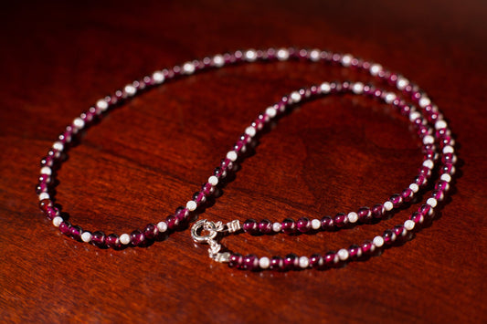 Merlot Roter Granat 3mm Runde Choker Layering Halskette, Süßwasserperle Runder Spacer, 925 Sterling Silber, Januar Geburtsstein, Frauen Geschenk
