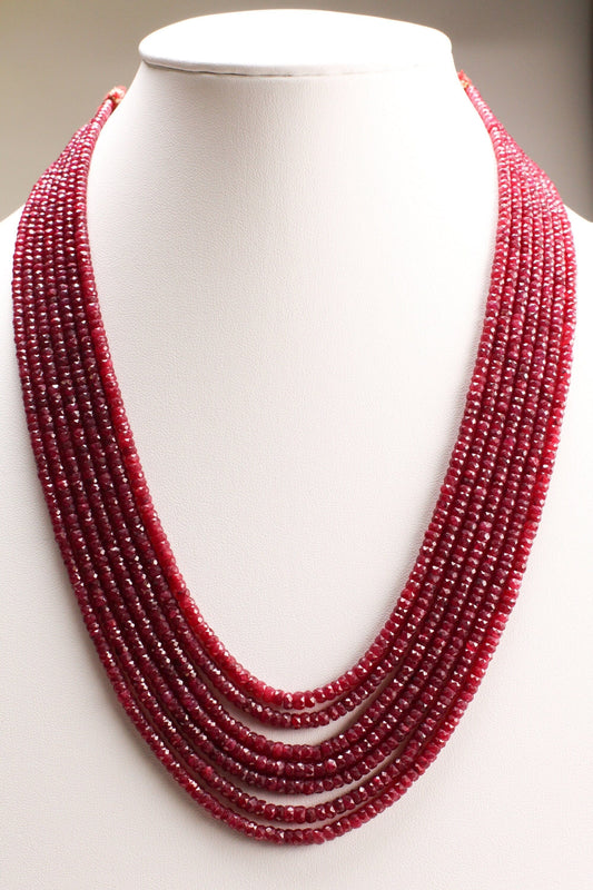 AAA-Halskette mit natürlichen Rubin-Edelsteinen, 3–4 mm, mehrreihig, 5, 7, 8, 9, 10-reihig, mit verstellbarem Faden bis zu 24 Zoll lang, wertvolles Geschenk für sie.