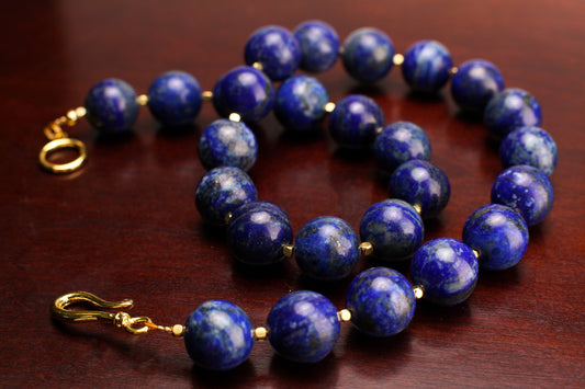 Natürlicher Lapislazuli 16mm schlicht rund mit goldenem Spacer im Bali-Stil, handgefertigte Halskette