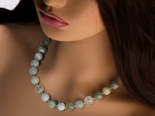 Echter natürlicher Aquamarin AA 12 mm glatt rund, 14 Karat Gold gefüllte Abstandshalter und Verschluss, Edelsteinschmuck, Geburtsstein für März, Geschenk für Frauen