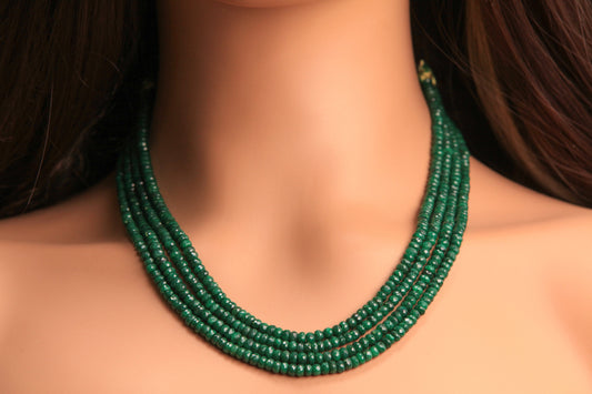 Natürlicher sambischer Smaragd, facettiertes Roundel, 3,5–4 mm, Edelstein, 3-reihig, 4-reihige Halskette mit 9" verstellbarem Faden, Geburtsstein für Mai, Geschenk