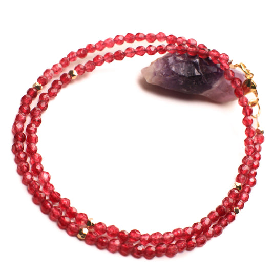 Halsband aus rotem Onyx, 4 mm, facettiert, rund, mit Abstandshalter aus Gold oder Silber mit Diamantschliff