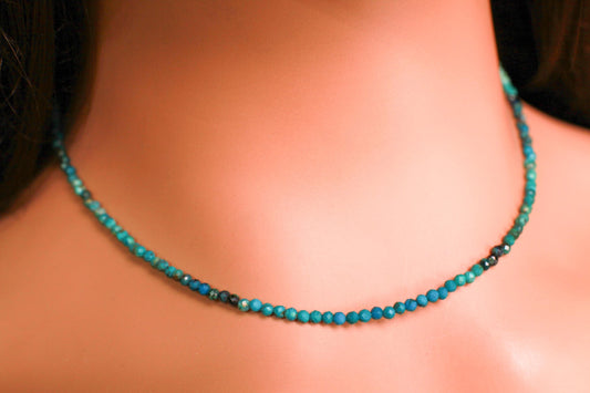 Natürlicher Chrysokoll 2mm facettiert rund mit 925 Sterling Silber, Choker Layering Elegante Halskette, Geschenk