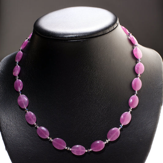 Halskette mit natürlichen Tundra-Saphir-AAA-Facetten-Brioletten in Tropfenform und Rondell-Edelsteinperlen aus 925er Sterlingsilber, Abstandshalter und Verschluss, 40,6 cm