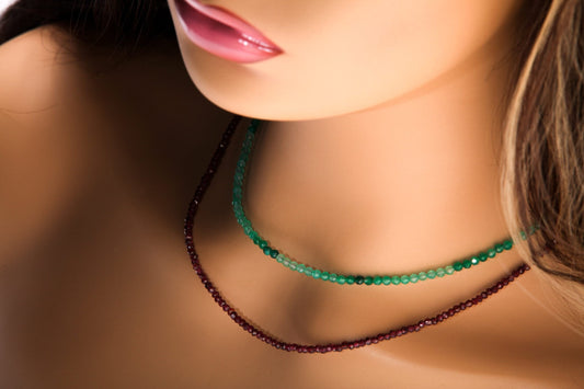 2–3 mm facettierter Lapislazuli, grüner Onyx, Granat, Bambuskoralle, Layering-Halskette aus 925er Sterlingsilber, Edelstein