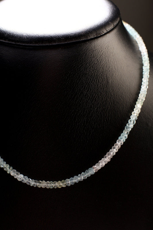 Mehrfarbige Aquamarin-Halskette, natürlich schattiert, 3,5 mm, Mikroschliff, facettierter Aquamarin, runder Choker, Schichtung, elegante Halskette