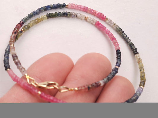 Natürlicher facettierter 2,5–3 mm großer Rondell-Edelstein mit 14 Karat Gold gefülltem Abstandshalter und Verschlusshalskette 14 bis 30 Zoll. Elegantes Geschenk.