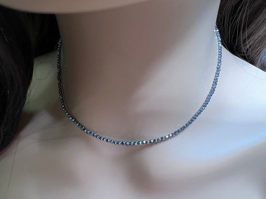 Echte Terahertz-Halskette, facettiert, 2 mm rund, Diamantschliff, Choker, minimalistisch, Abschlussball, Abschlussfeier, Layering-Halskette, Heilstein