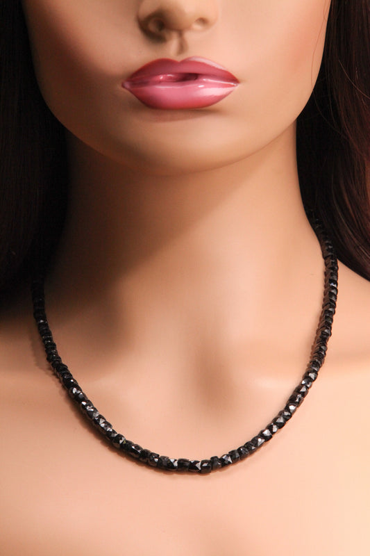 Schwarzer Spinell, 4–5 mm, quadratische Würfelform, mehrlagige Halskette für Männer und Frauen, 14 - 36 Zoll, 925er Sterlingsilber-Verschluss
