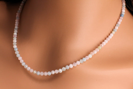 Morganit Multi Aquamarin Facettiert 4mm Rund Choker Layering Elegante Halskette Geschenk
