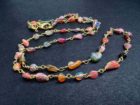 Echte, drahtumwickelte, äthiopische Feueropal-Welo-Opal-Kette aus 22 Karat Vermeil-Gold.