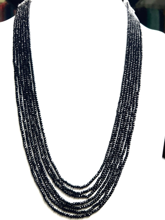 Echte 7-reihige Halskette aus schwarzem Spinell, 3 mm mikrofacettierter Edelstein, 7-reihig mit verstellbarer Fadenhalskette.