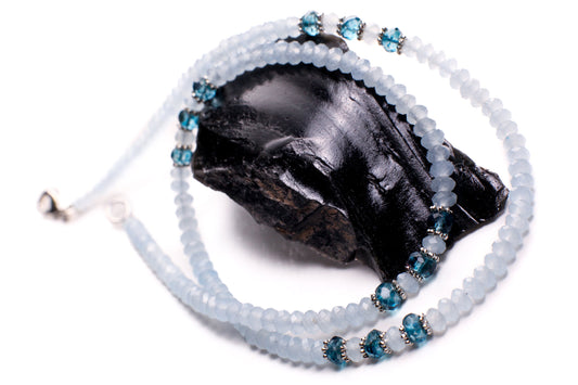 Granat und Aquamarin 2,5 mm glatte runde Halskette. Chocker Layering minimalistisches Geschenk Januar und März Geburtsstein