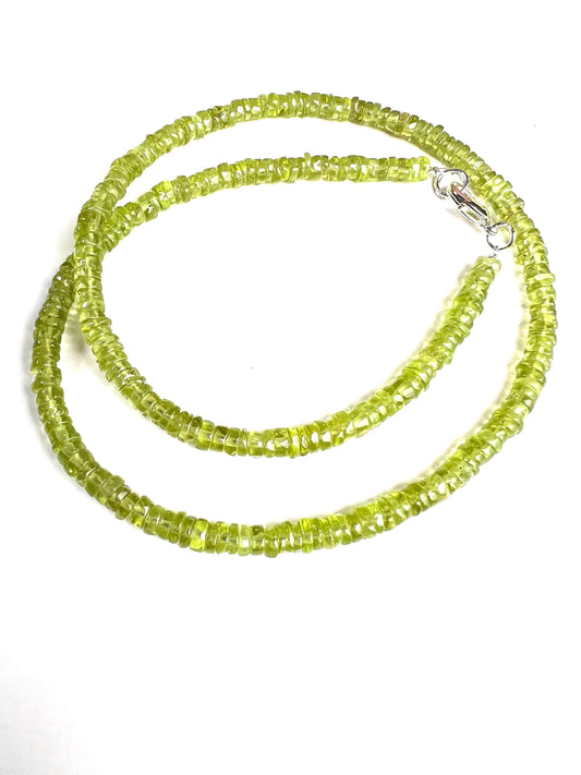 Peridot glatte Heishi Halskette,natürlicher Peridot AAA Qualität roher Heishi grün Chakra Heilung beruhigender Edelstein August Geburtsstein Männer und Frauen Geschenk