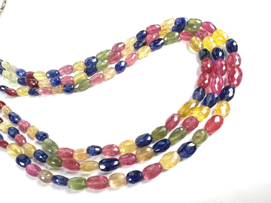 Natürlicher facettierter, ovaler Saphir, 7–10 mm, Edelsteine, 3-reihige, verstellbare Halskette, 16–18 Zoll, 362 Karat