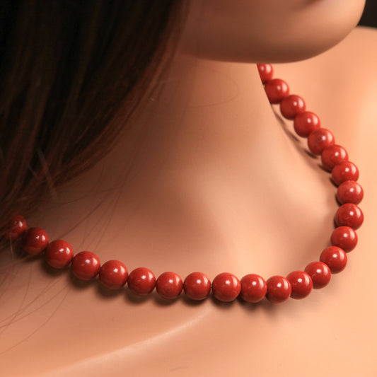 Natürlicher roter Jaspis 10 mm glatte runde Choker-Halskette, handgefertigt, Bali-Stil großer Hakenverschluss ziegelrot, Energie, Geburtsstein Oktober