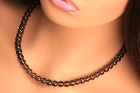 Natürlicher Rauchquarz 8 mm glattes rundes Silber, Rauchquarz in AAA-Qualität, Heilung, Energie, Meditationshalskette