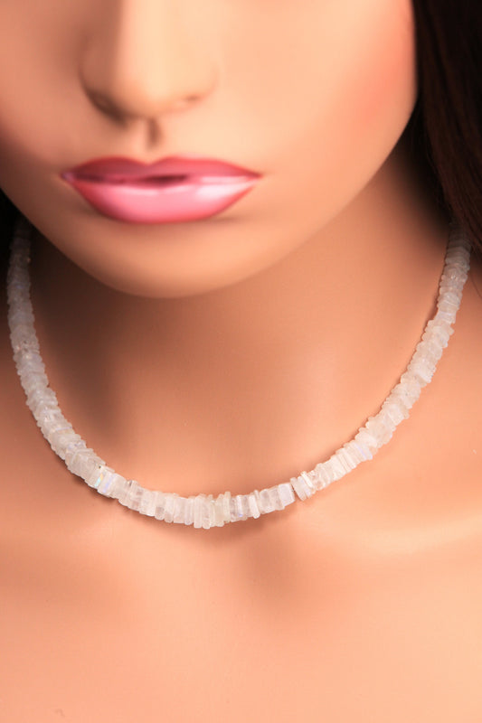 Natürlicher Regenbogen-Mondstein, quadratisch, Heishi, 4–7,5 mm, abgestufte Silberkette, Heilung, Energie, Geschenk
