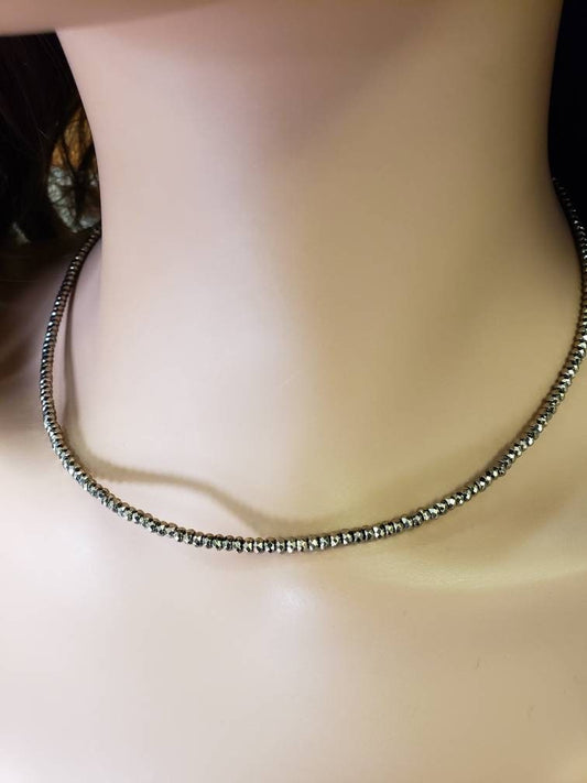 Spezialanfertigung für Hannah - Pyrit 3,5 mm facettierte, runde, unvollendete Halskette 16" mit Crimp, Drahtschutz und ohne Verschluss