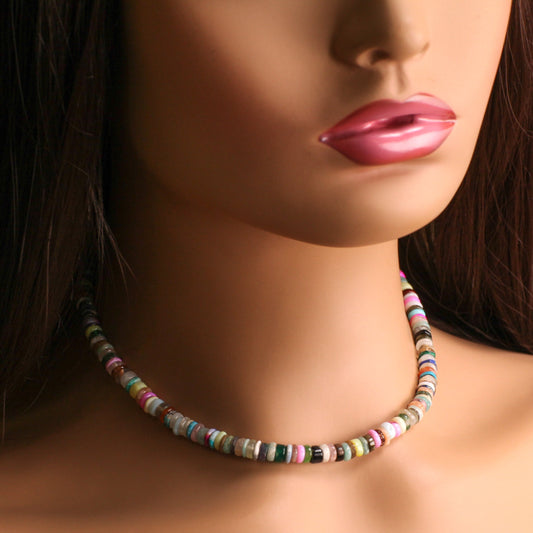 Natürlicher Multi-Edelstein-Disko-Mix-Edelstein, 6,5 mm, Heishi-Roundel, Scheibe, glatte Roundel-Perlen-Halskette