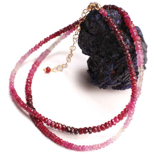 Natürlicher Ombre Rubin facettiert Ombre Pink Shaded Roundel 3-3,5 mm AAA Qualität, 14k Gold Filled Halskette Elegantes kostbares Geschenk