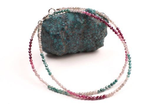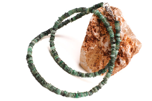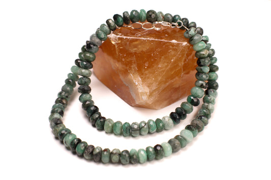 Natürlicher Smaragd Ombre 6–7 mm facettierte Rondell mit Halskette aus 925er Sterlingsilber, Energie-Chakra-Yoga-Geschenk.