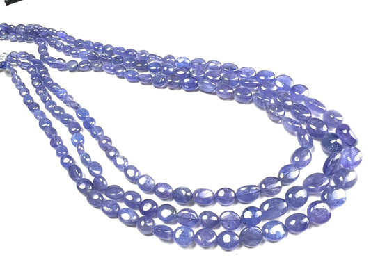 Natürlicher Tansanit, glatt, oval, 7–10 mm, 3-reihige Halskette an verstellbarem Faden, 16–18 Zoll Perle mit langem verstellbarem Faden bis 30 Zoll, 378 Karat