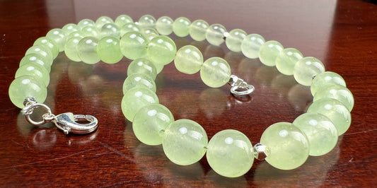 Bergjade Pastell Hellgrün 8mm glatte runde Silberkette Wählen Sie von 16" bis 34"