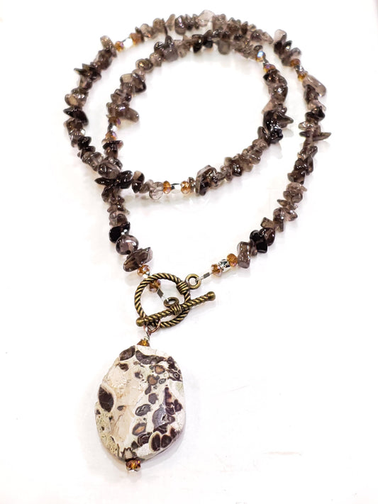 Ozeanjaspis 25x35mm Großer facettierter Anhänger, Rauchquarz Freiheitsnugget Bronze Halskette Natürlicher Edelstein Handgemachtes Geschenk für Sie