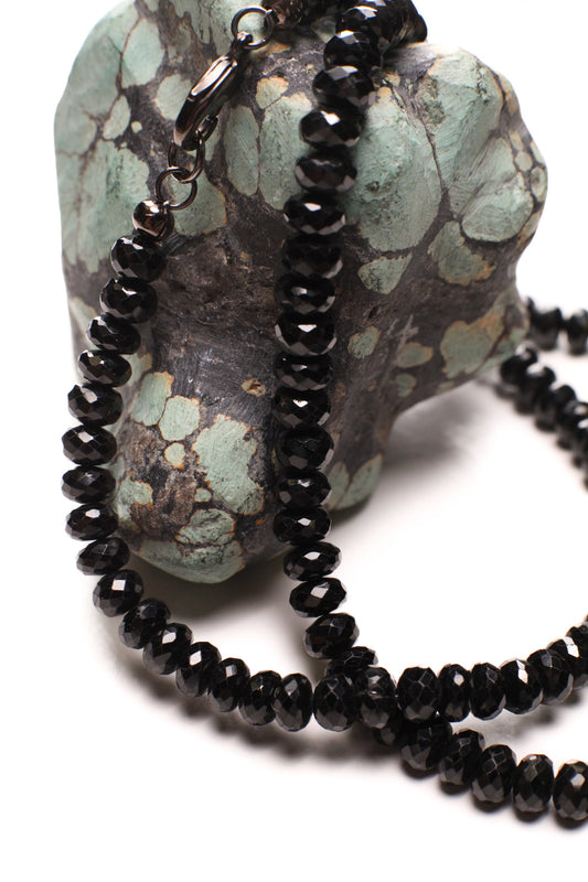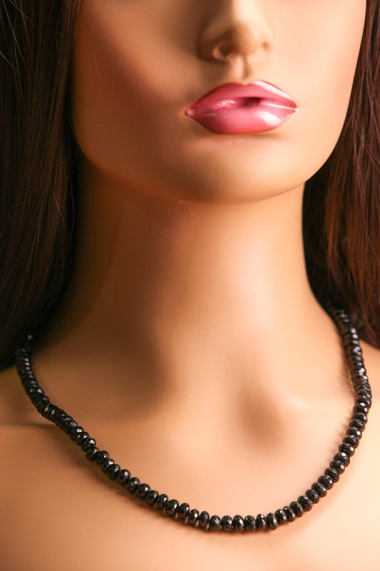 Natürlicher schwarzer Spinell, 8–9 mm, große Halskette mit Mikrofacetten-Diamantschliff, rhodinierter Sterlingsilber-Verschluss, mehrlagige Halskette, 35,6–91,4 cm