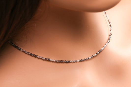 Natürlicher schwarzer Rutilquarz AAA Hochwertige Halskette 2mm glatte runde Perlen Choker Minimalistisch, Layering Halskette