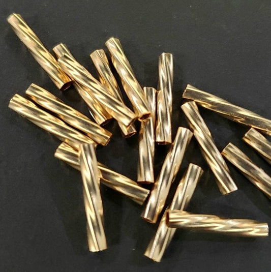 6 Stück 14 Karat Gold gefüllte gedrehte Röhren, 2 x 12 mm, zur Schmuckherstellung. Hergestellt in den USA. Hohe Qualität