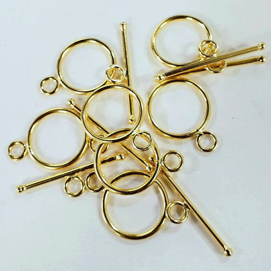 22K Gold Vermeil 925 Sterling Silber Bali Knebelverschluss 15mm Kreis & 26mm Stange, Bali handgefertigter Verschluss, 1 Set oder Bulk