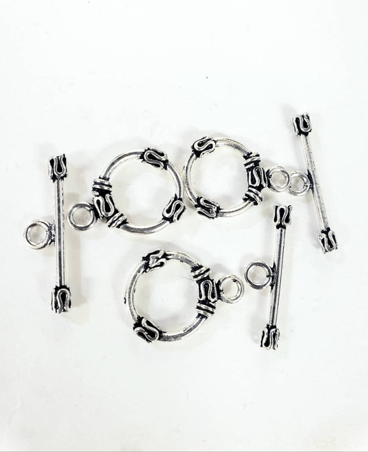 15 mm Knebelverschluss aus 925er Sterlingsilber, Bali, handgefertigt, antiker, robuster Knebelverschluss zur Schmuckherstellung. 1 Set oder Großpackung